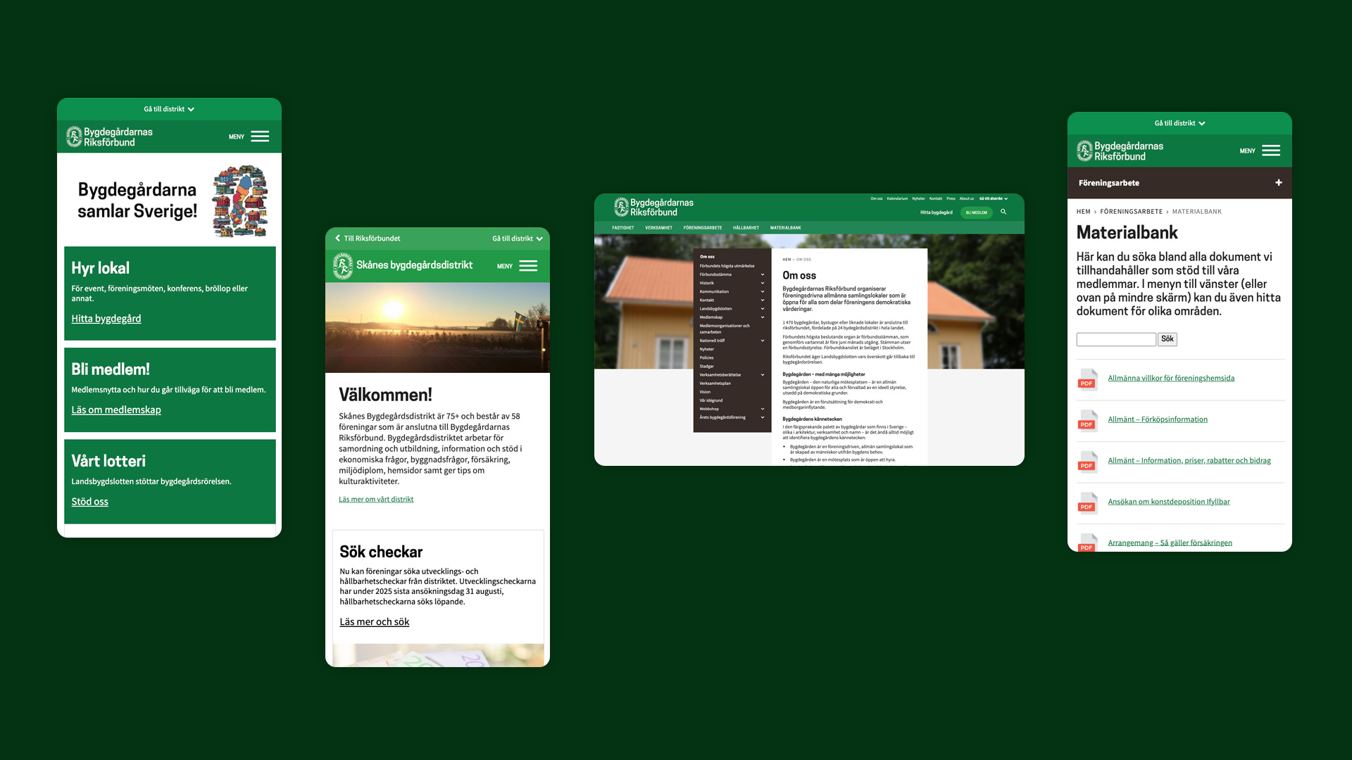 Webbplatsen är självklart responsiv och stort fokus har lagts på tillgänglighet för att möta kraven från användarna. Utöver ren information och service till medlemmar och allmänhet innehåller sidan också en viktig funktion där man kan söka reda på en lämplig bygdegård att hyra för evenemang.
